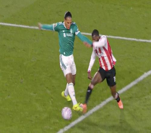 平心而论,此役的点球判罚确实有点符合大家对英超裁判的刻板印象,也就是评判标准飘忽。你能解释,但很难用同一种说法来解释。就说哈克波内切被主队后卫科林斯阻拦后倒地,后者肯定没碰到皮球,有没有踩到利物浦边锋则看不太清楚,但“夸张倒地”的哈克波也没有被判假摔。至于范戴克送出的点球,他肯定是踢到对方前锋瓦塔纳的脚尖了,但类似情况在本赛季之前也有不判的,并且犯规点正好在禁区线附近,也难怪斯洛特要说“我以为那是任意球”。