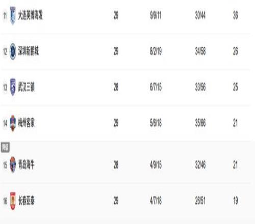 其次,跌入降级区的李霄鹏执教的青岛海牛队,也间接渔翁得利。