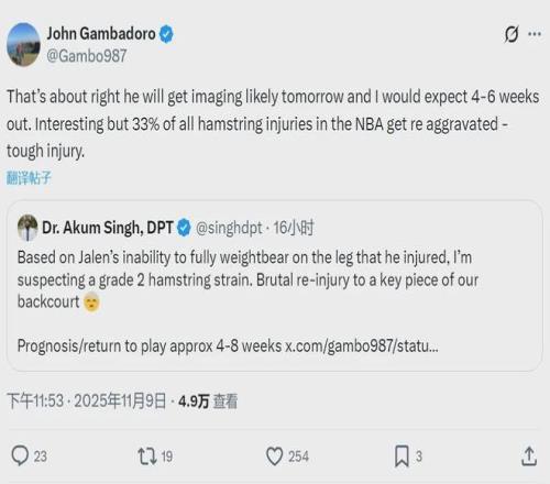 对杰伦-格林这种爆发力极强的球员来说,腿筋反复受伤无疑是重大打击。另据ESPN报道,格林在训练营期间腿筋首次受伤,季前赛期间伤势加重,他因此缺席了本赛季前8场常规赛。