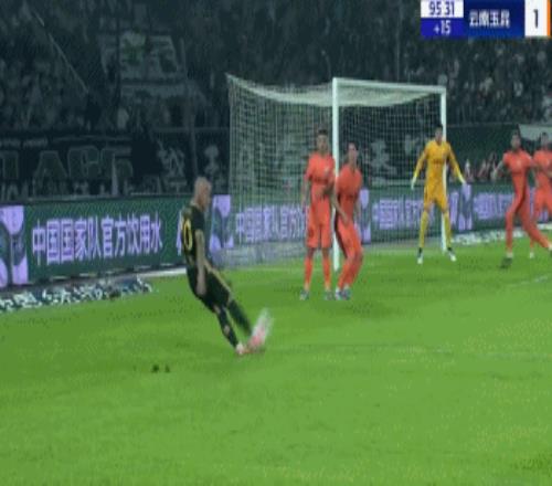 第23轮,云南1-1亚泰,张华晨无解定位球