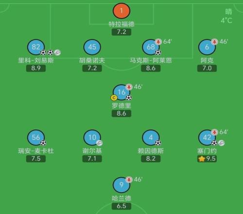第84分钟,曼城发起反击,穆卡萨横传,麦卡伊杜入网收获一线队首球,曼城9-0,大翔守住!