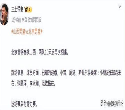 根据现场媒体报道,赵睿、小曾、周琦、斯佩尔曼缺席。这就意味着北京的综合实力方面,并没有太大的优势。